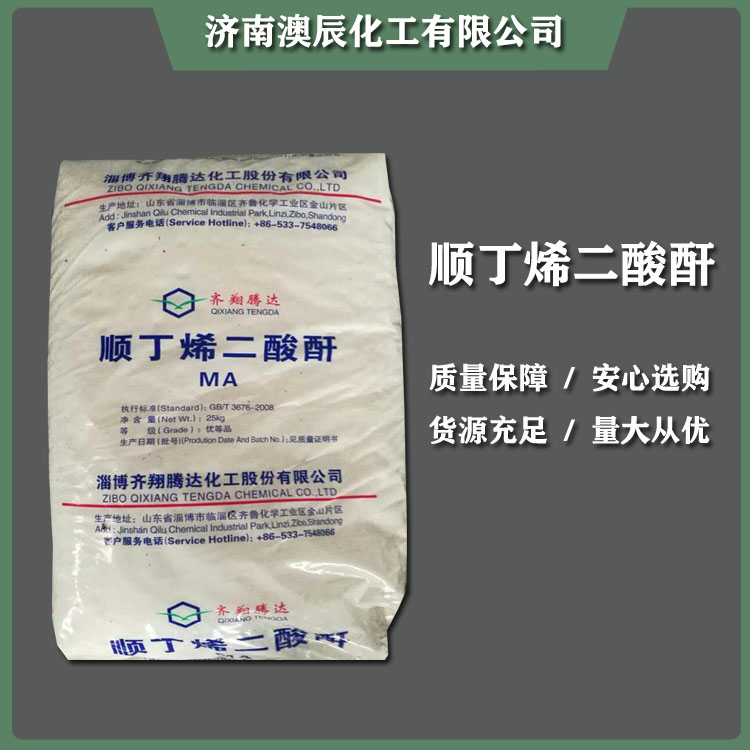 产品特点:马来酸酐,又称失水苹果酸酐、顺丁烯二酸酐、顺酐,是顺丁烯二酸的酸酐,室温下为有强烈刺激性气味的白色晶体,化学式为C4H2O3。济南澳辰主营正丁烷法球状顺酐 品牌有齐翔腾达、汇丰石化、唐山宝铁。现货充足一件起售全国随时发货量大工厂自提或送货。