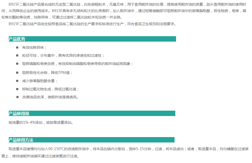 产品特点:能够吸附油脂中的磷脂和皂类杂质,延长油的使用寿命