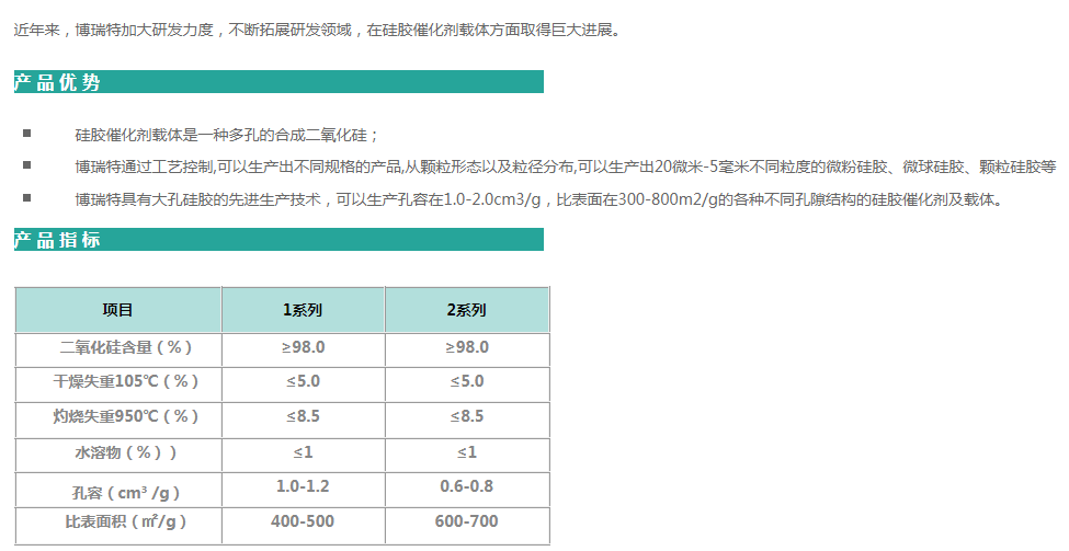 产品特点:硅胶催化剂载体是一种多孔的合成二氧化硅