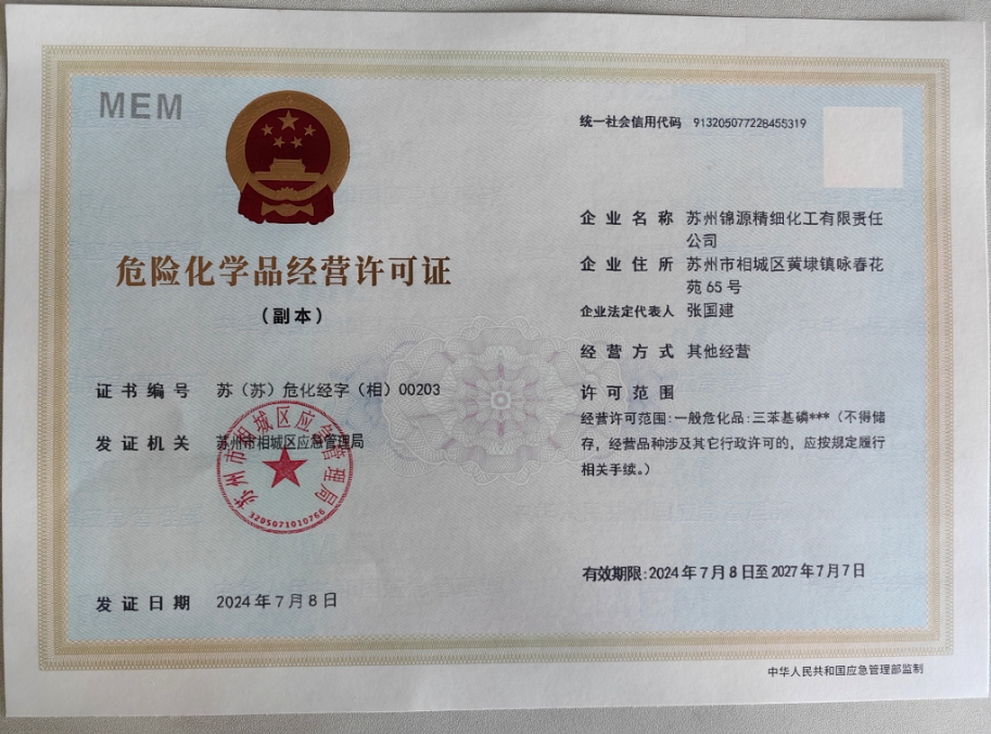 苏州锦源精细化工有限责任公司是一家专业从事三苯基膦产品研发、生产和销售的创新技术企业,公司创立于2000年,坐落在苏州市交通便捷。